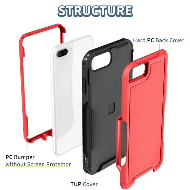 Funda para Teléfono iPhone 6 Plus 7 Plus 8 Plus 3 en 1 PC TPU a Prueba de Golpes (Rojo)