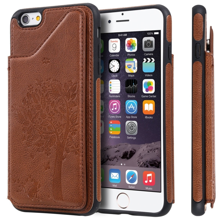 Funda Protectora para iPhone 6 Plus Cat Tree Engessing Pattern con Ranuras de Tarjetas y Marco de Fotos (Marrón)