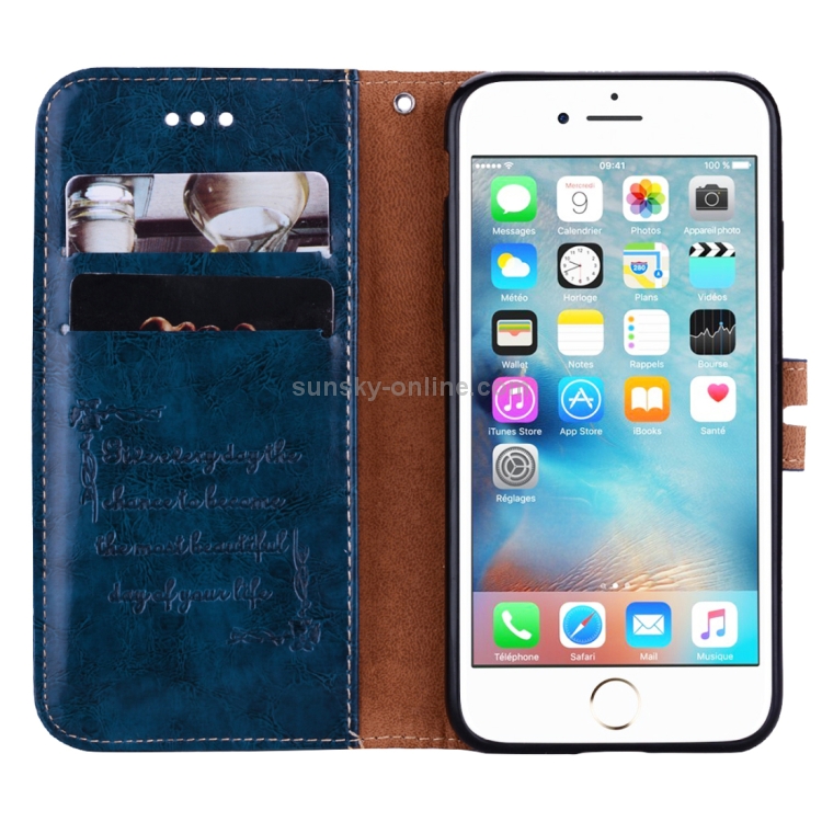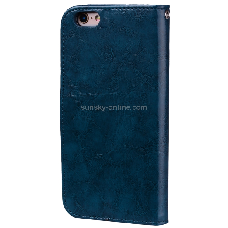 Funda de Cuero para iPhone 6 Plus y 6S Plus Business Style Oil Wax Texture con Tapa Horizontal, Soporte, Ranuras y Billetera (Azul)