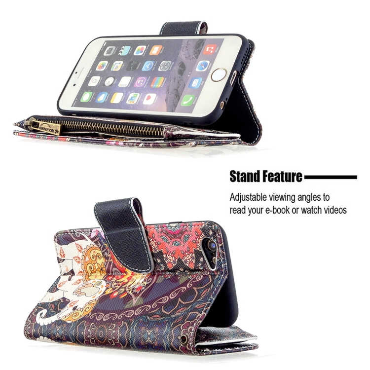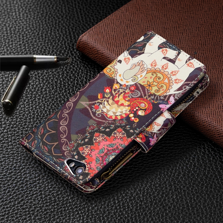 Funda de Cuero para iPhone 6S y 6 con Tapa Horizontal, Soporte, Ranuras para Tarjetas y Billetera (Elefantes de Flores)