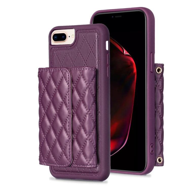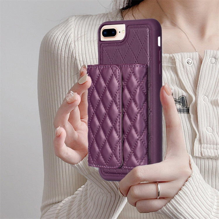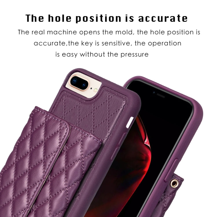 For iPhone 7 Plus/8 Plus Horizontal Wallet Rhombic Leather Phone Case (Dark Purple)
