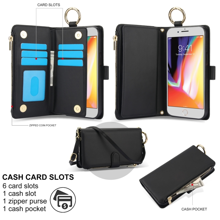 Funda para Teléfono iPhone 7 Plus/8 Plus Cuero Billetera Multifuncional Anillo (Negro)