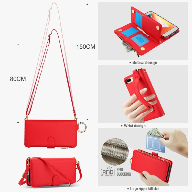 Funda para Teléfono iPhone 7 Plus/8 Plus Cuero Billetera Multifuncional Anillo Cruzado (Rojo)