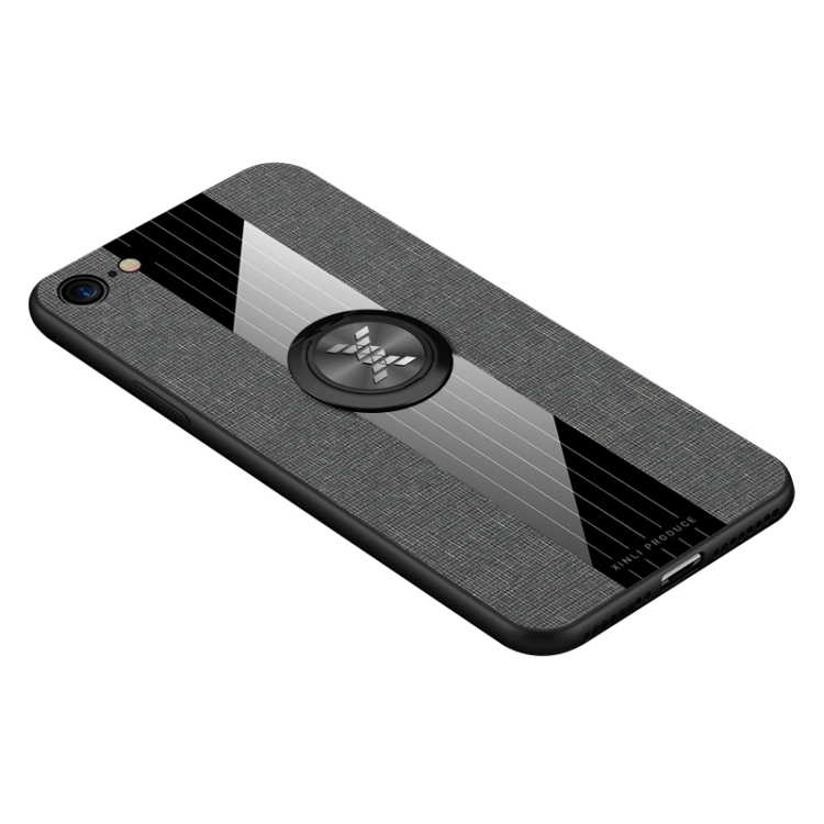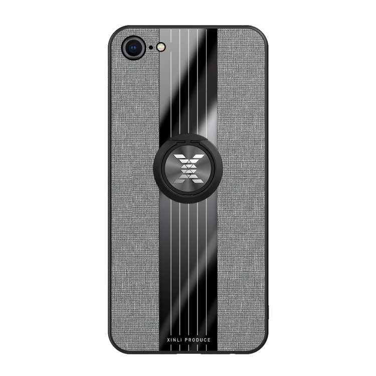 Estuche protector TPU Xinli para iPhone 8/7 con textura de tela, costura y soporte para anillo (Gris)