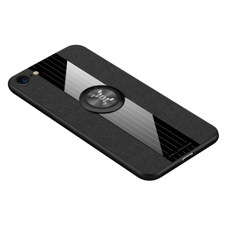 Funda Protectora TPU Xinli para iPhone 8/7 Textura Tela Costura Soporte Anillo (Negro)