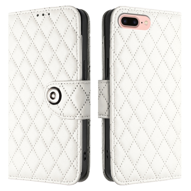 Funda para Teléfono iPhone 8 Plus 7 Plus 6S Plus Tapa Cuero Textura Rómbica Cordón (Blanco)