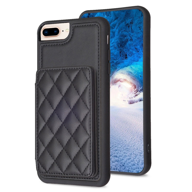 Funda para iPhone 8 Plus 7 Plus Bf25 Square Plaid Card Bag Holder Phone Case (Negro)