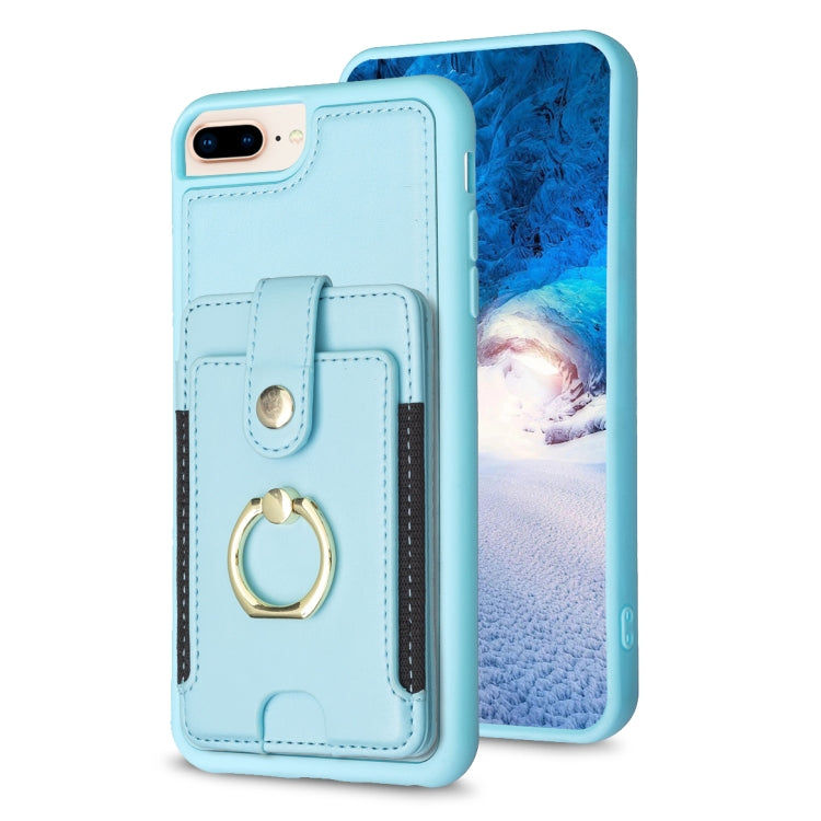 Funda para Teléfono Bf27 para iPhone 8 Plus y 7 Plus con Soporte para Tarjeta y Anillo de Metal (Azul)
