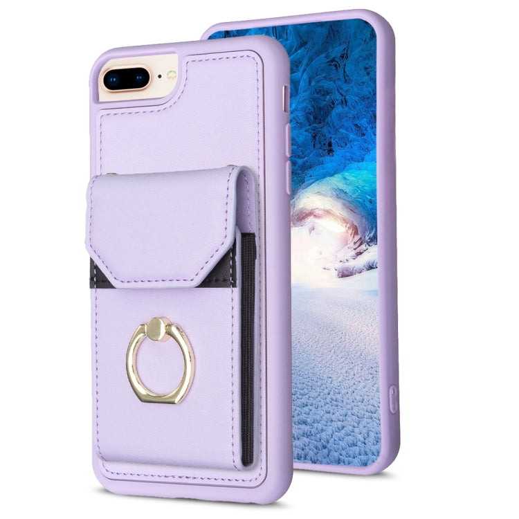 Funda para Teléfono Bf29 para iPhone 8 Plus/7 Plus con Soporte para Anillo y Bolsa para Tarjeta de Órgano (Púrpura)