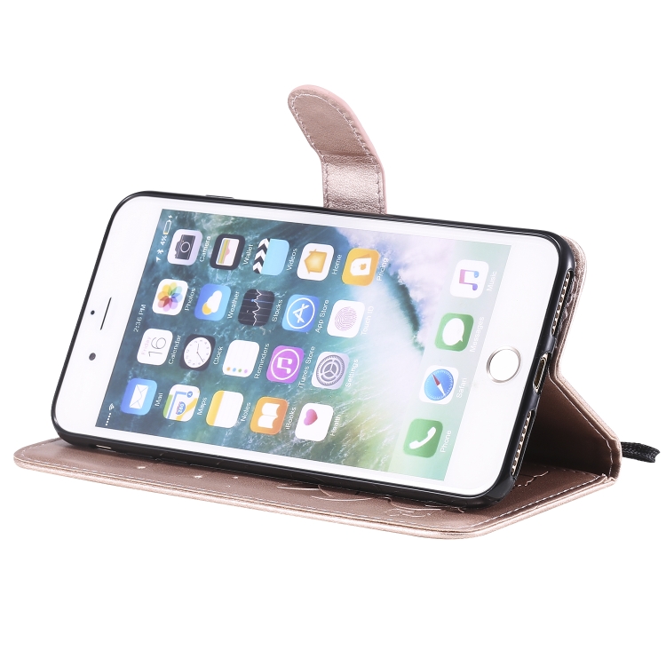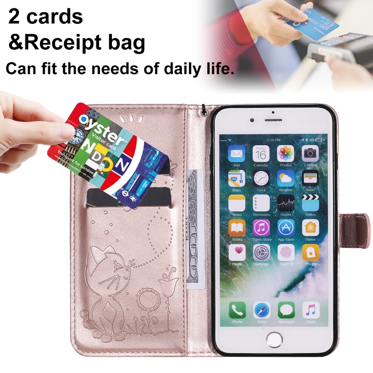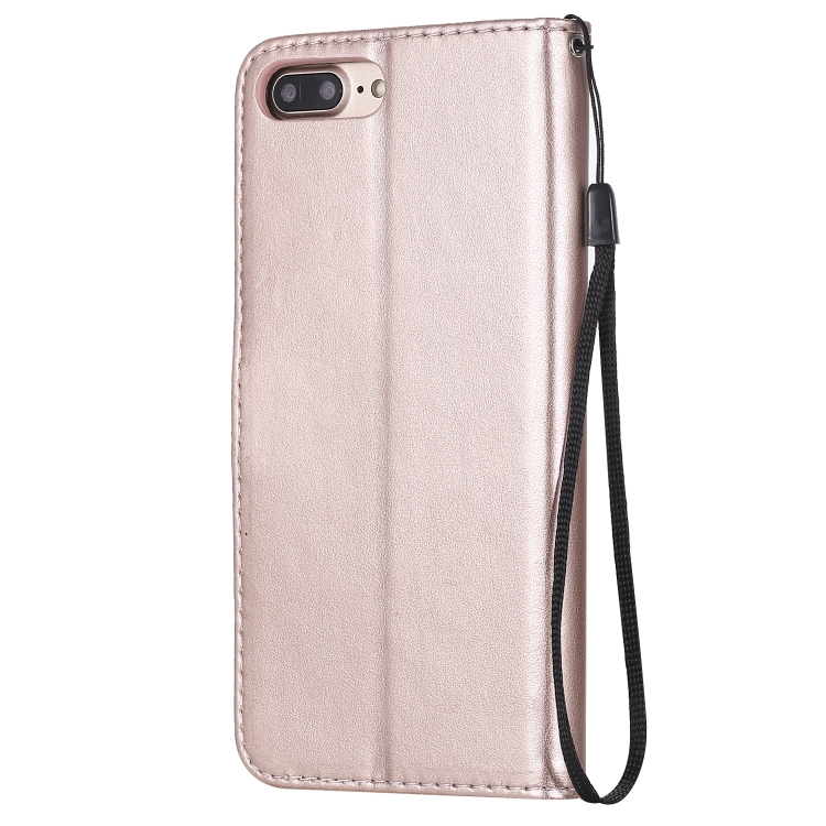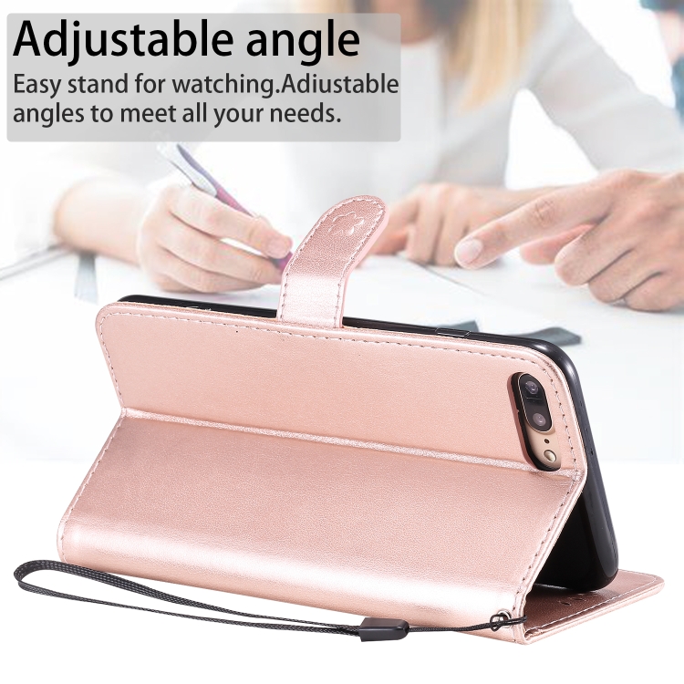 Funda de Cuero Cat Bee para iPhone 8 Plus y 7 Plus con Tapa Horizontal, Soporte, Ranuras para Tarjetas y Billetera (Oro Rosa)