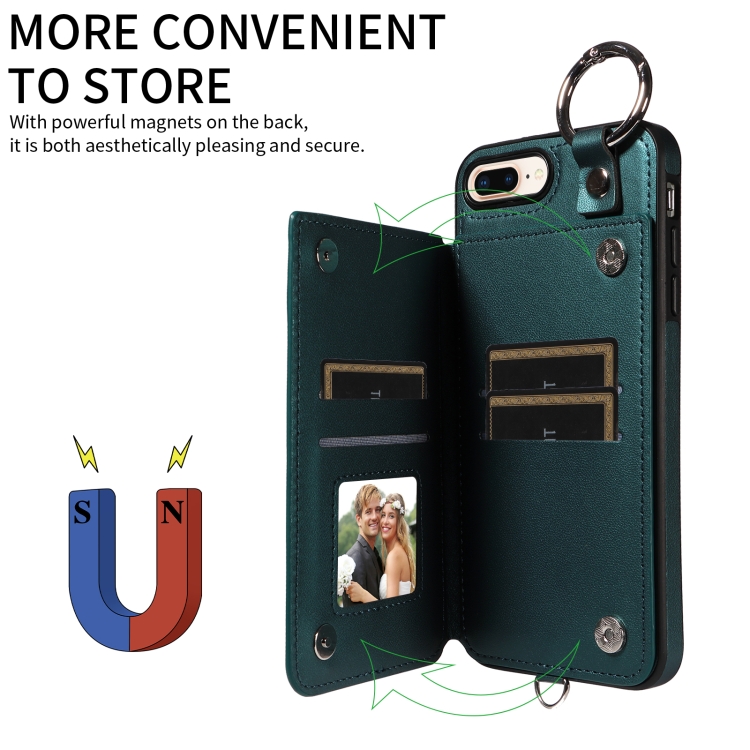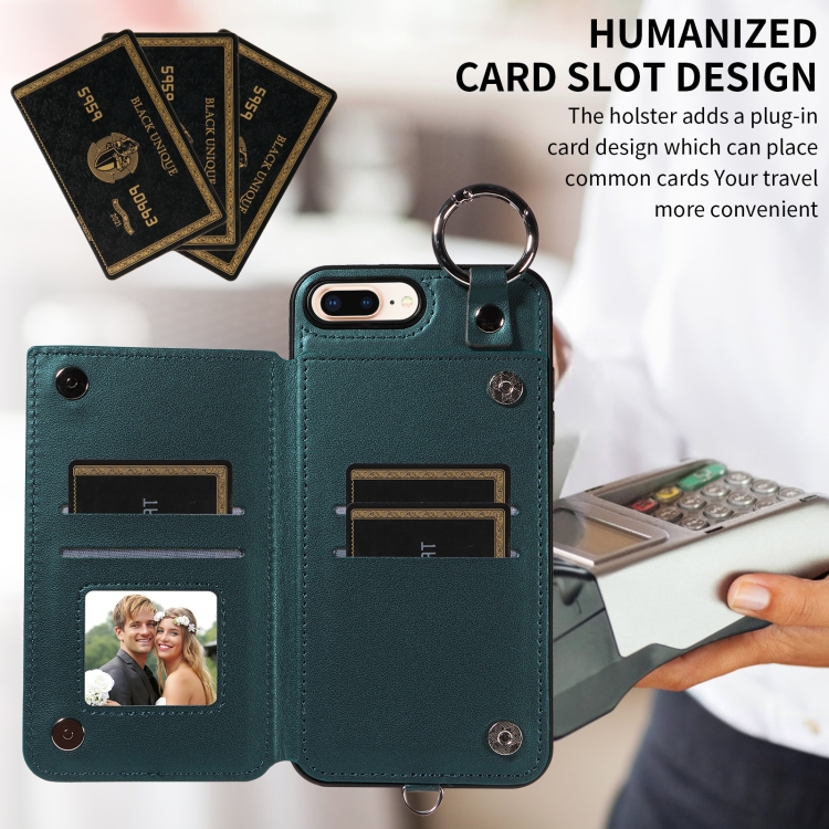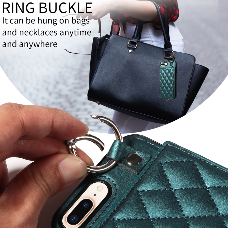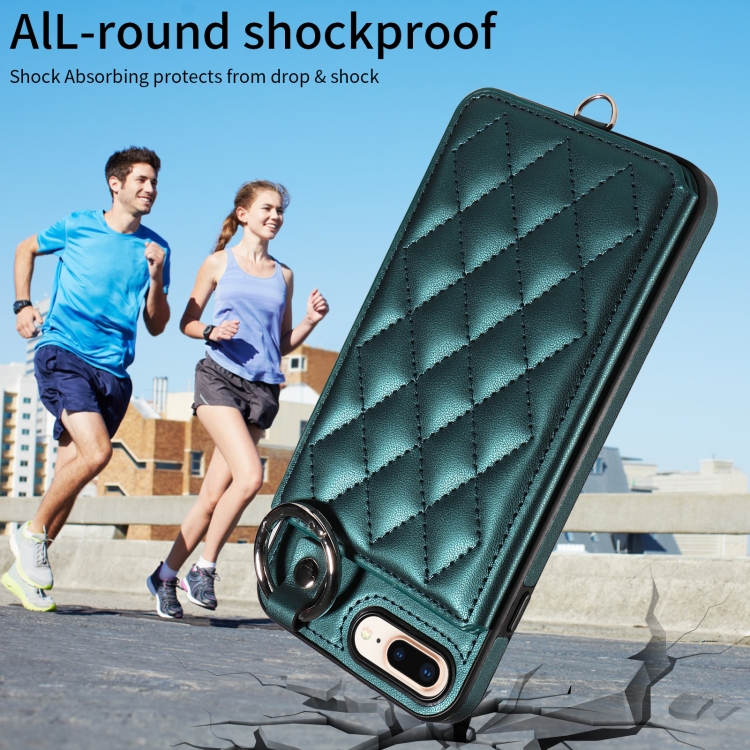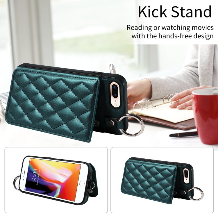 Funda para Teléfono iPhone 8 Plus/7 Plus con Bolsa para Tarjetas Textura Rómbica y Cordón Corto (Verde)