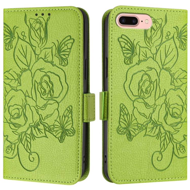 Funda para Teléfono Apple iPhone 8 Plus/7 Plus Cuero Antirrobo RFID con Rosa en Relieve (Verde)