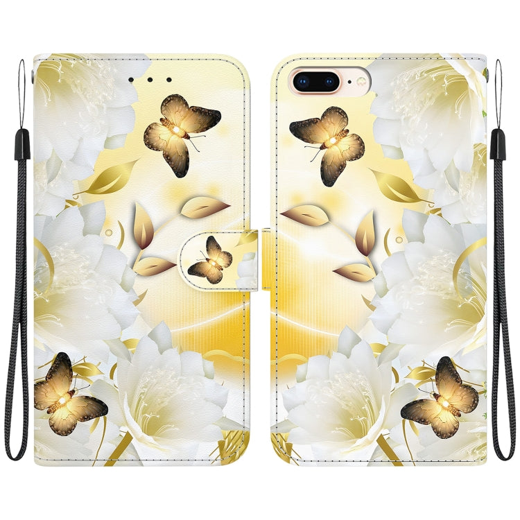 Funda para Teléfono iPhone 8 Plus/7 Plus Cuero Dibujo Coloreado Textura Cristal (Epiphyllum Mariposa Dorada)