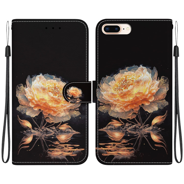 Funda para Teléfono iPhone 8 Plus/7 Plus Cuero Dibujo Coloreado Textura de Cristal (Peonía Dorada)