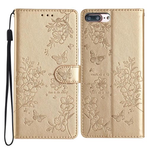 Funda para Teléfono iPhone 8 Plus 7 Plus Cuero Relieve Flor Amor y Mariposa (Dorado)