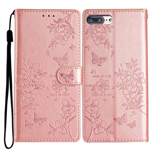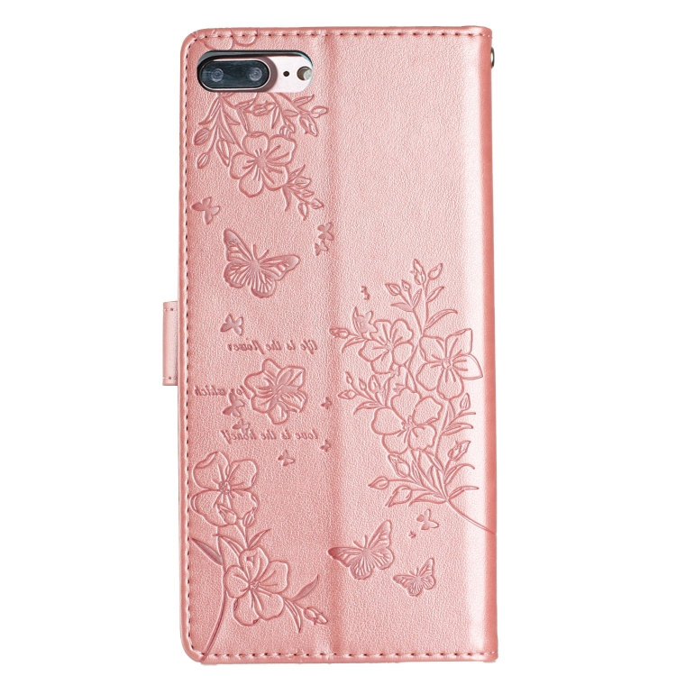 Funda para Teléfono iPhone 8 Plus 7 Plus Cuero Relieve Flor Amor Mariposa (Oro Rosa)