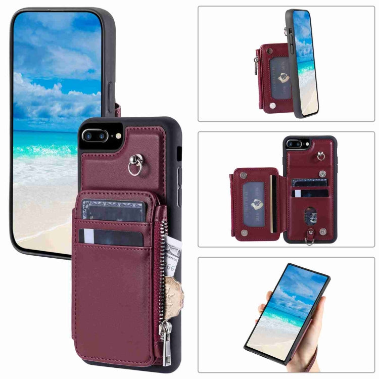 Funda para Teléfono iPhone 8 Plus/7 Plus Rfid con Ranuras para Tarjetas y Cremallera (Rojo Vino)