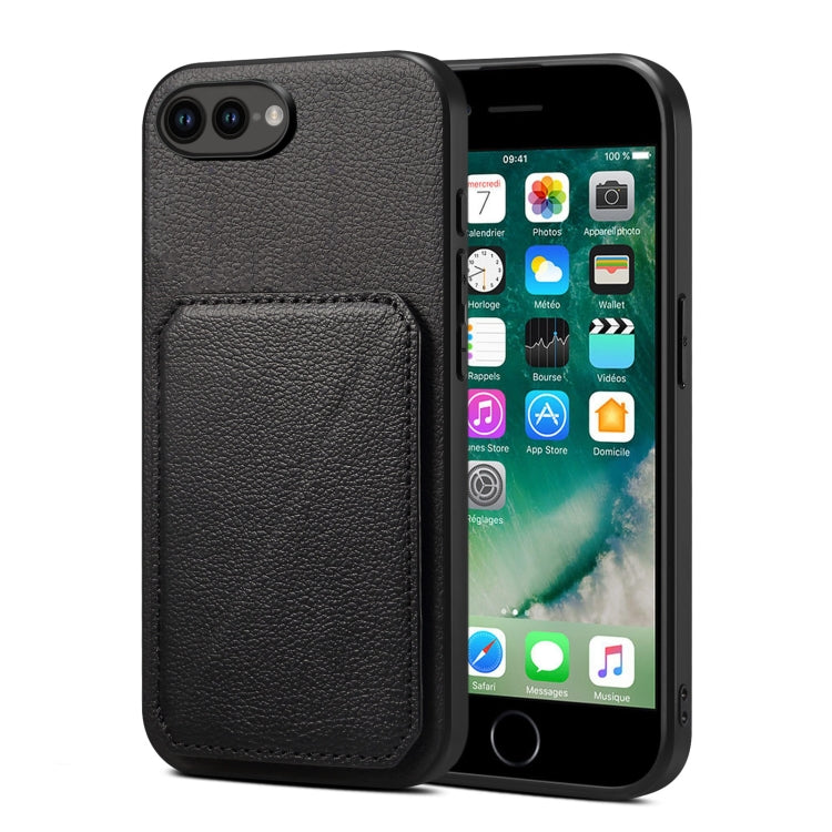 Funda Trasera para iPhone 8 Plus 7 Plus Piel de Becerro de Imitación con Soporte (Negro)