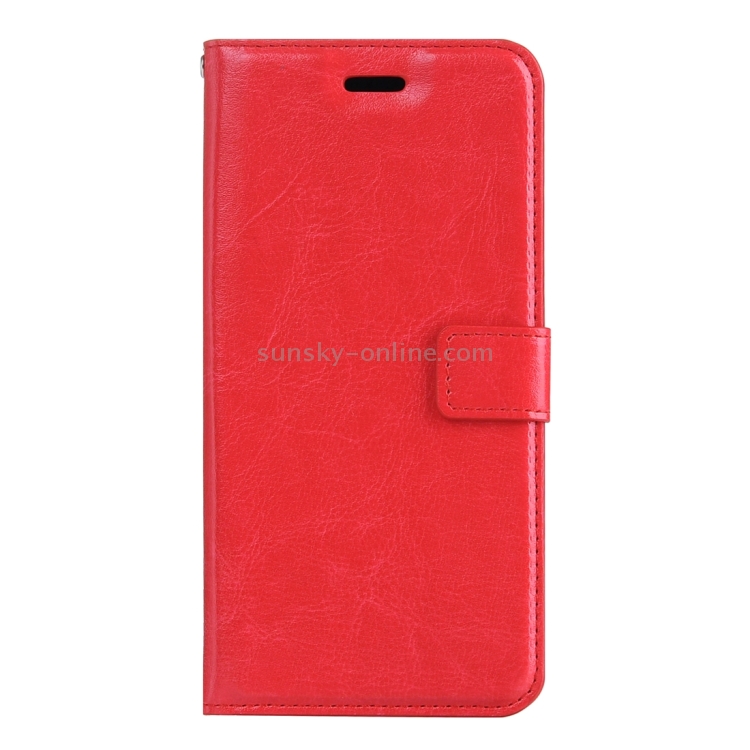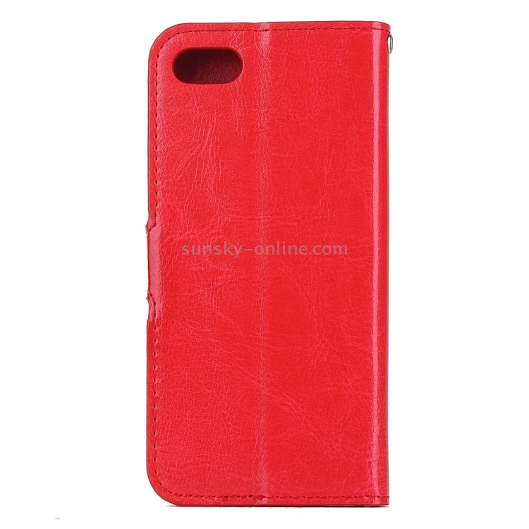 Funda de Cuero Crazy Horse para iPhone 8 Plus y 7 Plus con Tapa Horizontal, Hebilla Magnética, Soporte, Ranuras para Tarjetas, Billetera y Marco de Fotos (Rojo)