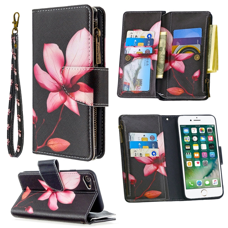 Funda de Cuero iPhone 8 y 7 Lotus con Tapa Horizontal, Soporte, Ranuras y Billetera