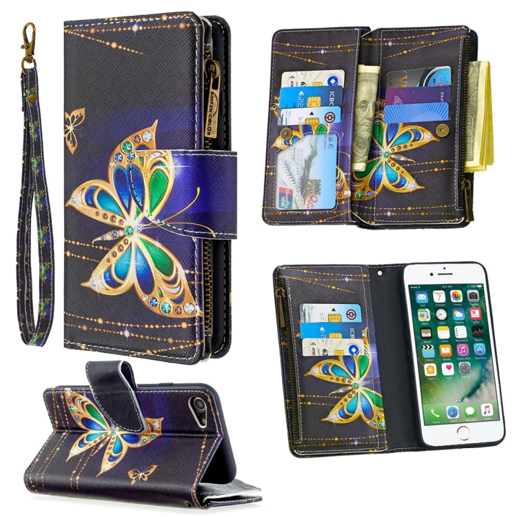 Funda de Cuero iPhone 8 y 7 Patrón Dibujo Colores Cremallera Tapa Horizontal Soporte Ranuras Tarjetas Billetera (Big Butterfly)