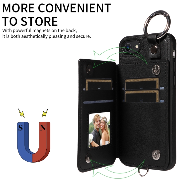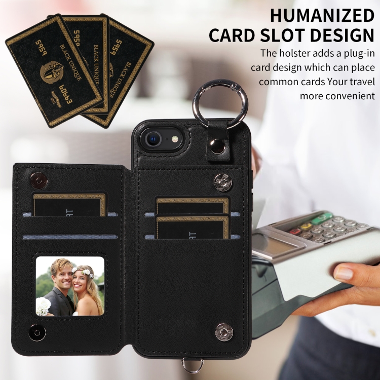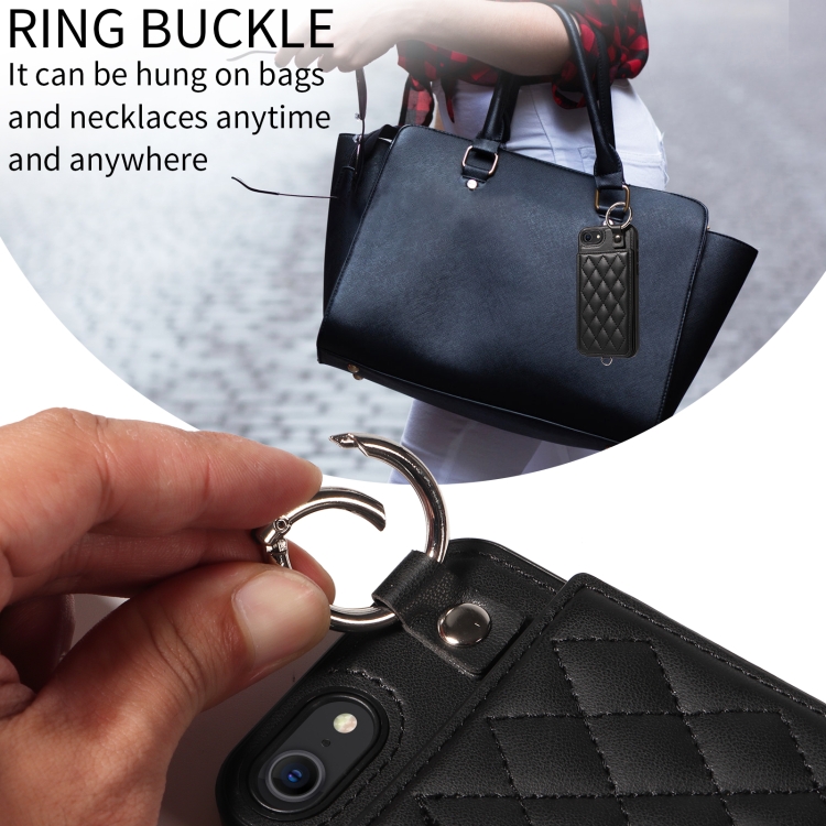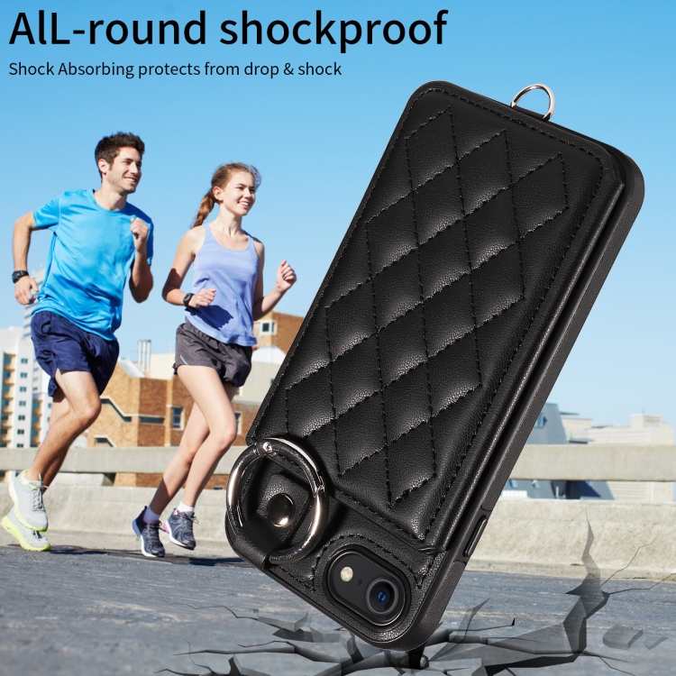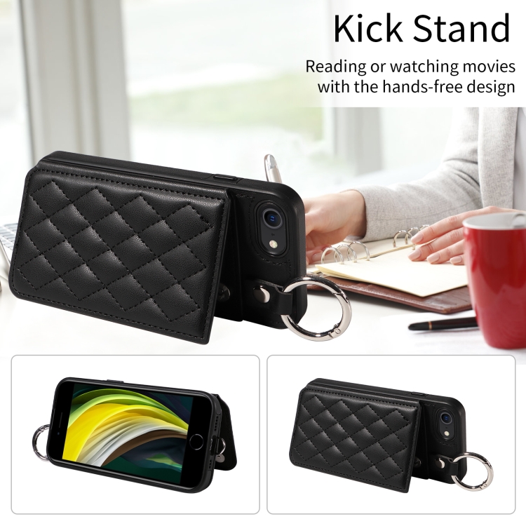 Funda para Teléfono iPhone SE 2022/2020/8/7 con Bolsa para Tarjetas Textura Rómbica y Cordón Corto (Negro)