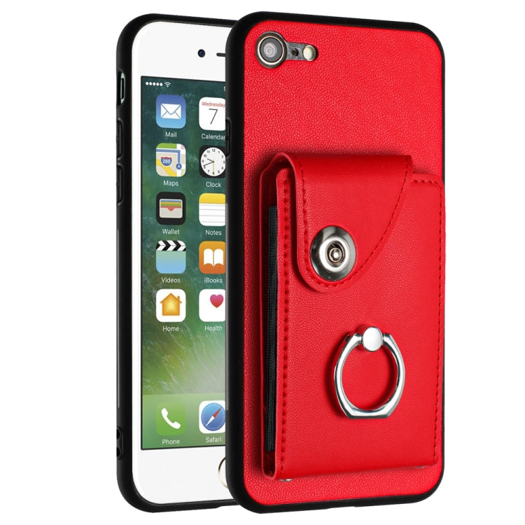 Funda para Teléfono iPhone SE 2022/2020/8/7 con Soporte para Anillo y Bolsa para Tarjeta (Rojo)
