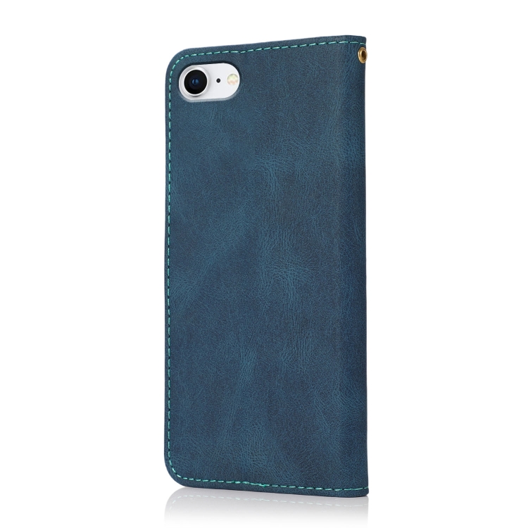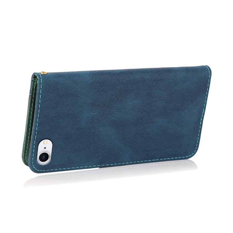 Funda de Cuero iPhone SE 2022/2020 Costuras Dos Colores (Azul Verde)