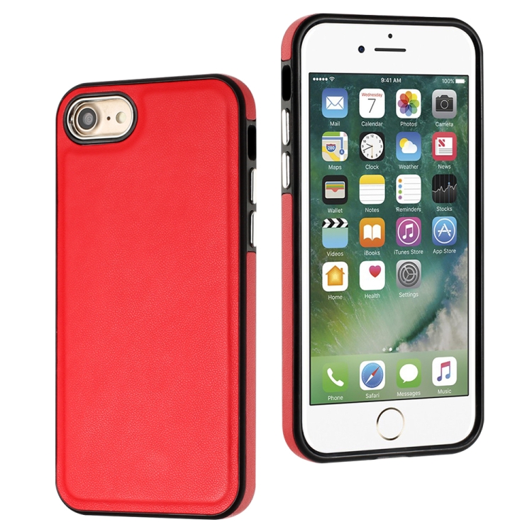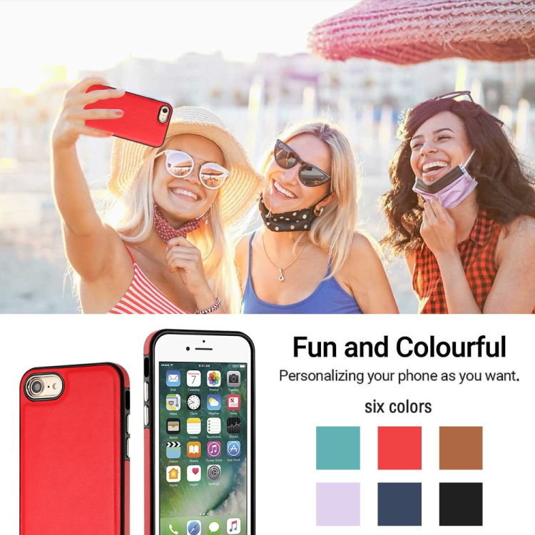 Funda de Teléfono iPhone SE 2022 / 6 / 7 / 8 / SE 2020 Textura de Cuero Cobertura Completa (Rojo)