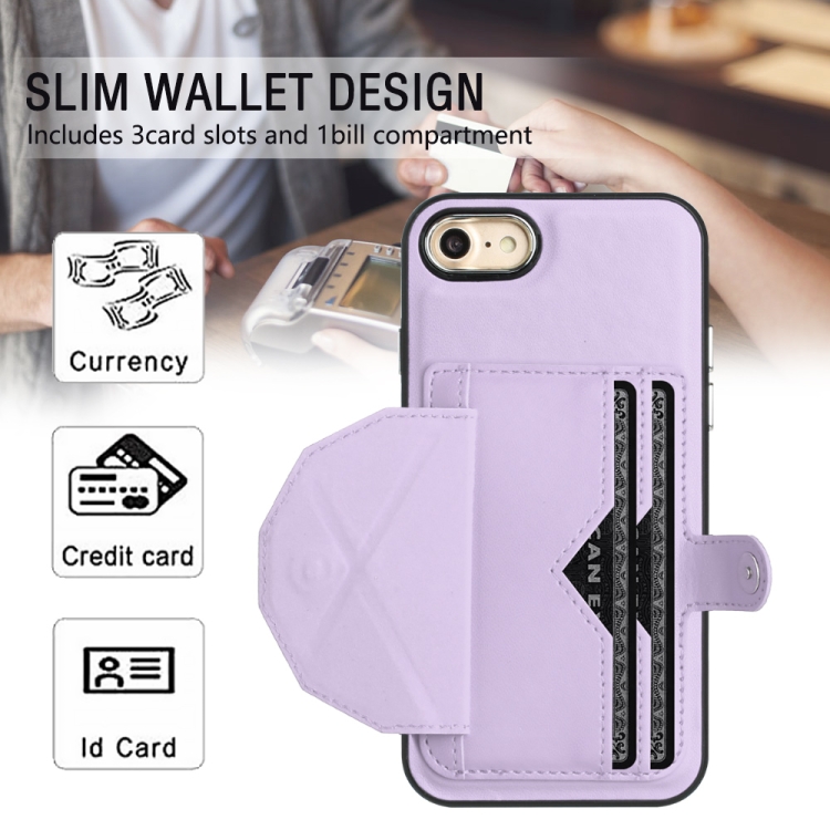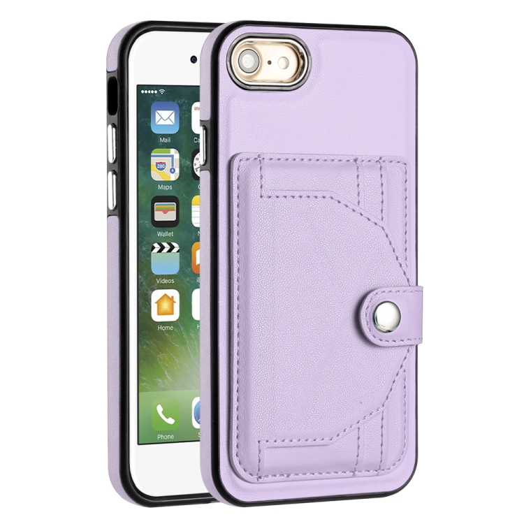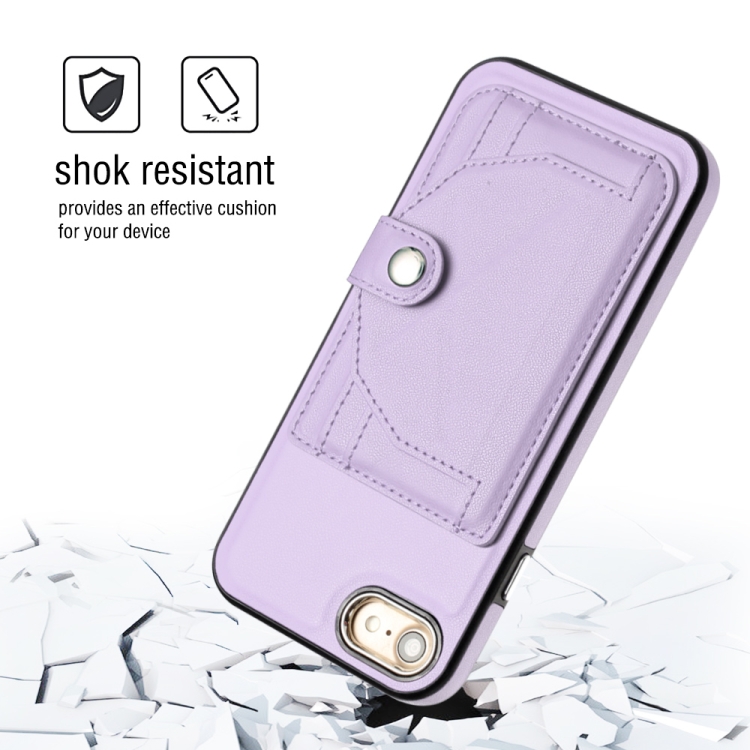 Funda de Teléfono iPhone SE 2022/SE 2020/6/7/8 Cuero a Prueba de Golpes con Tarjetero (Púrpura)