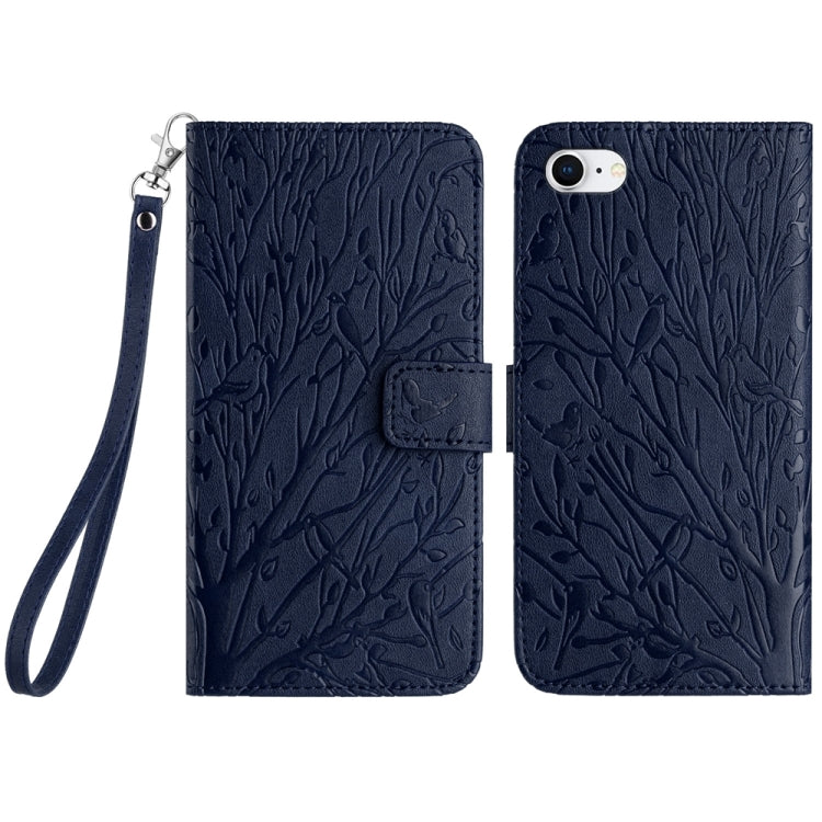 Funda para Teléfono iPhone Se 2022 Se 2020 6 7 8 Cuero Patrón Relieve Pájaros Árbol (Azul)