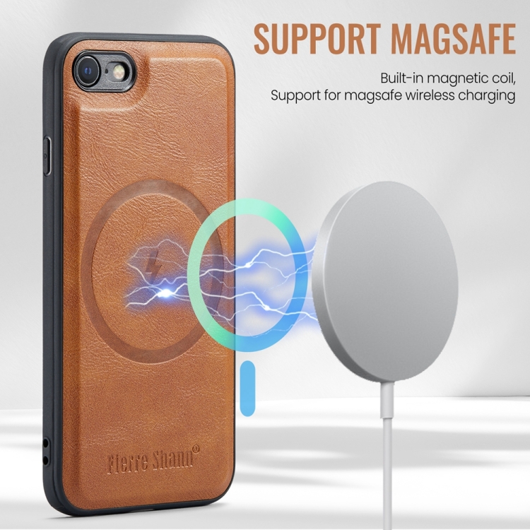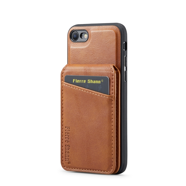 For iPhone SE 2022/SE 2020/8/7 Fierre Shann Oil Wax Cowhide Leather Magnetic Card Holder Phone Case (Brown)