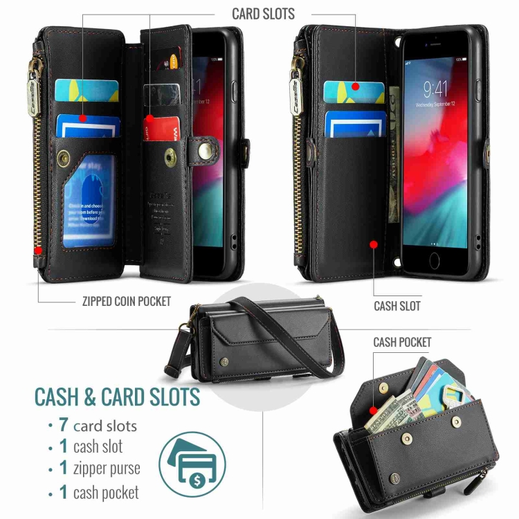 Estuche para iPhone Se 2022/Se 2020 Caseme C36 Cartera con Ranuras para Tarjetas y Cremallera (Negro)