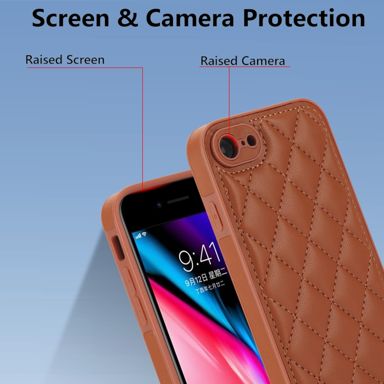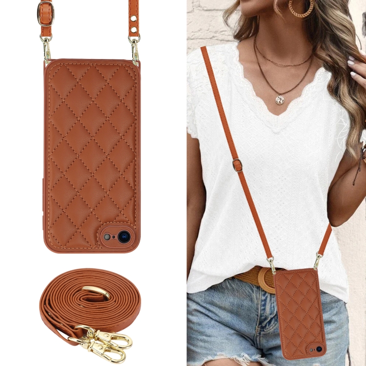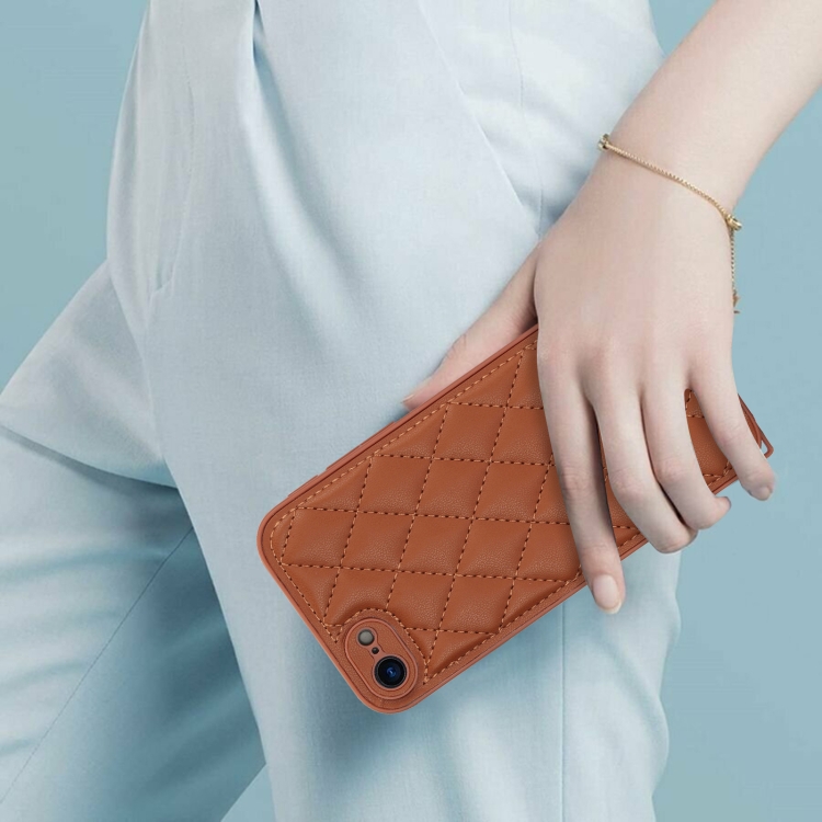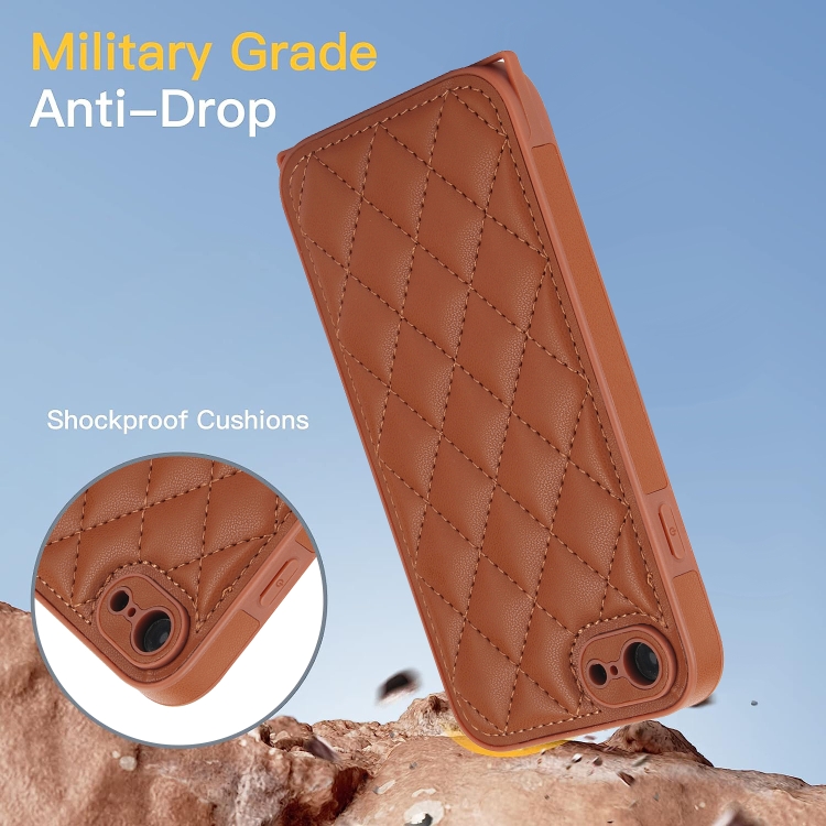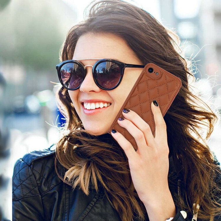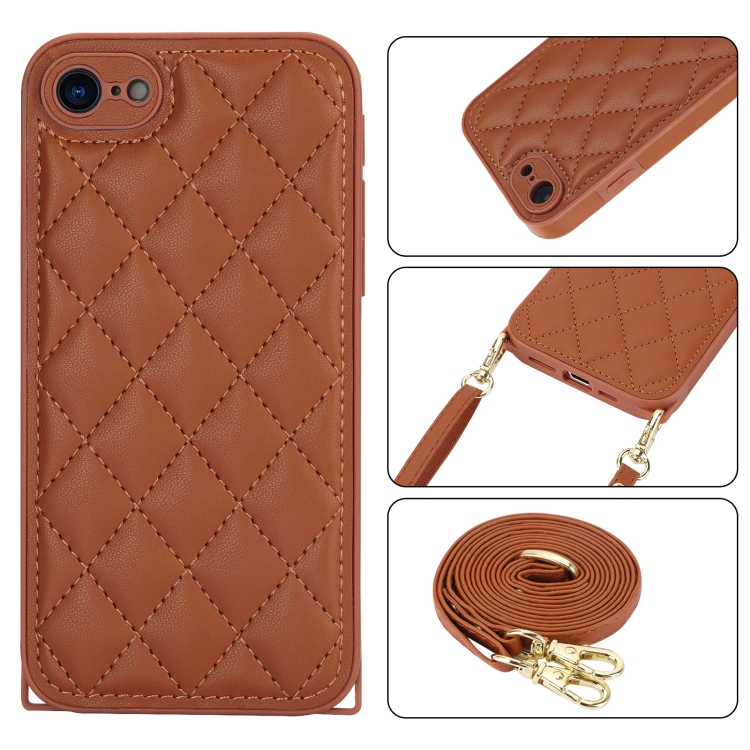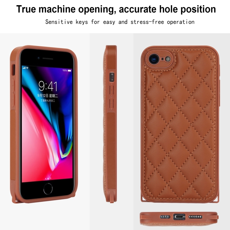 Funda para Teléfono iPhone SE 2022/SE 2020 con Textura Rómbica y Cordón Doble (Marrón)