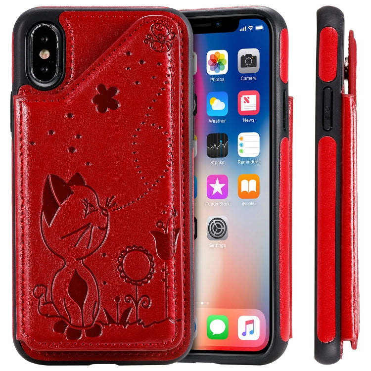 Estuche protector para iPhone X Cat Bee patrón en relieve a prueba de golpes con ranuras para tarjetas y marco de fotos (Rojo)
