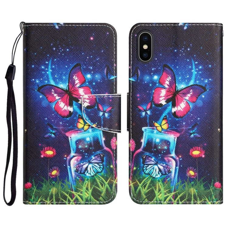 For iPhone X Colored Drawing Leather Phone Case (Bottle Butterfly)