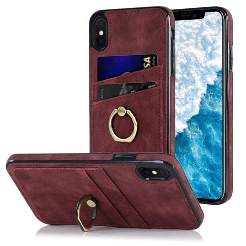 Funda de Teléfono iPhone X Cuero Parche Vintage Soporte para Anillo (Rojo)