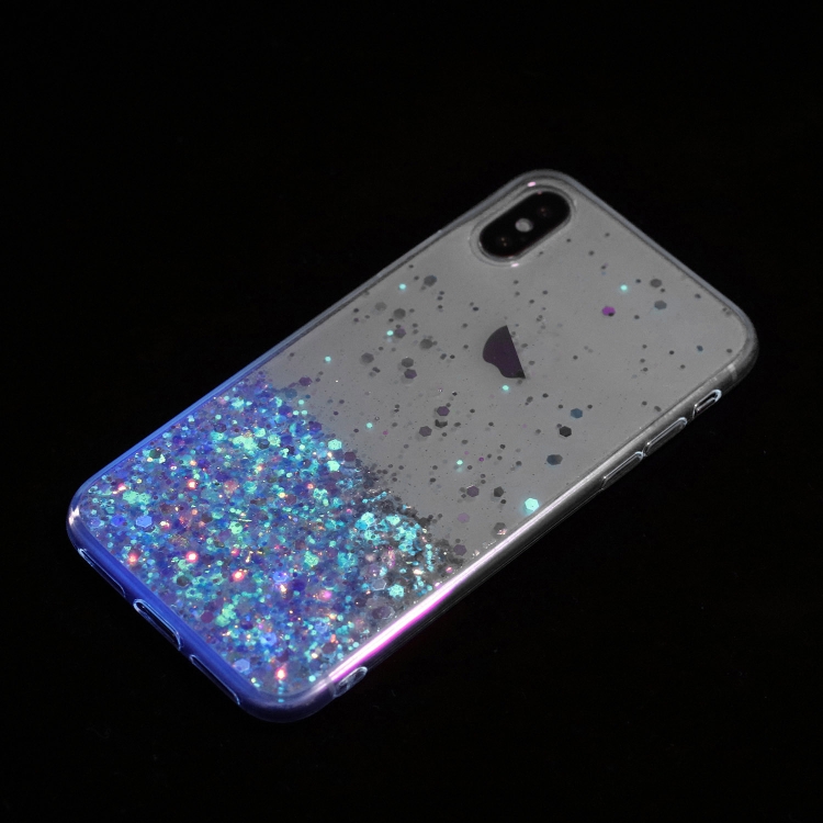 Funda para Teléfono TPU para iPhone X con Polvo de Brillo Noctilucente y Marco Transparente (Púrpura)