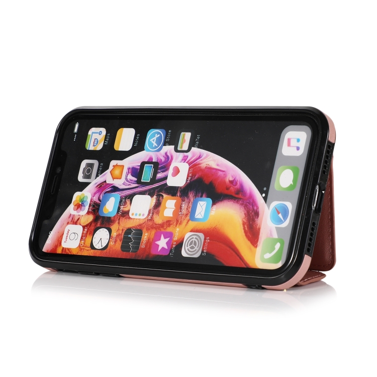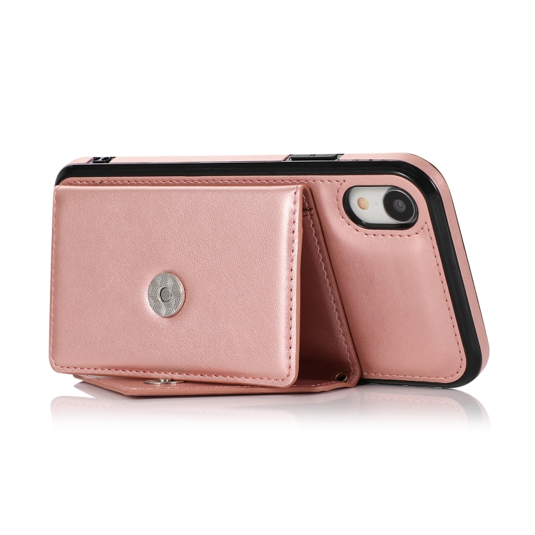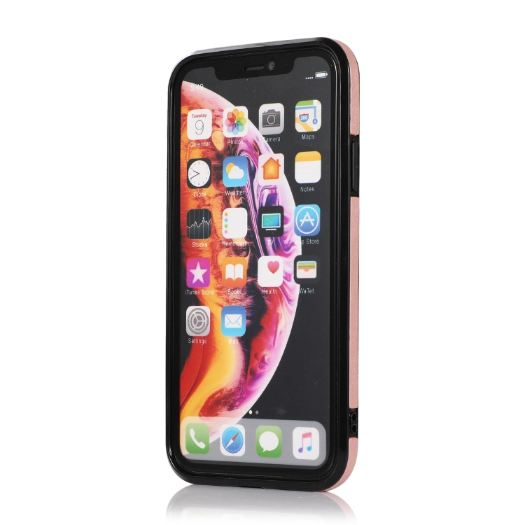 Funda Trasera iPhone X Xs TPU + PU con soporte y ranura para tarjeta y billetera (Oro Rosa)