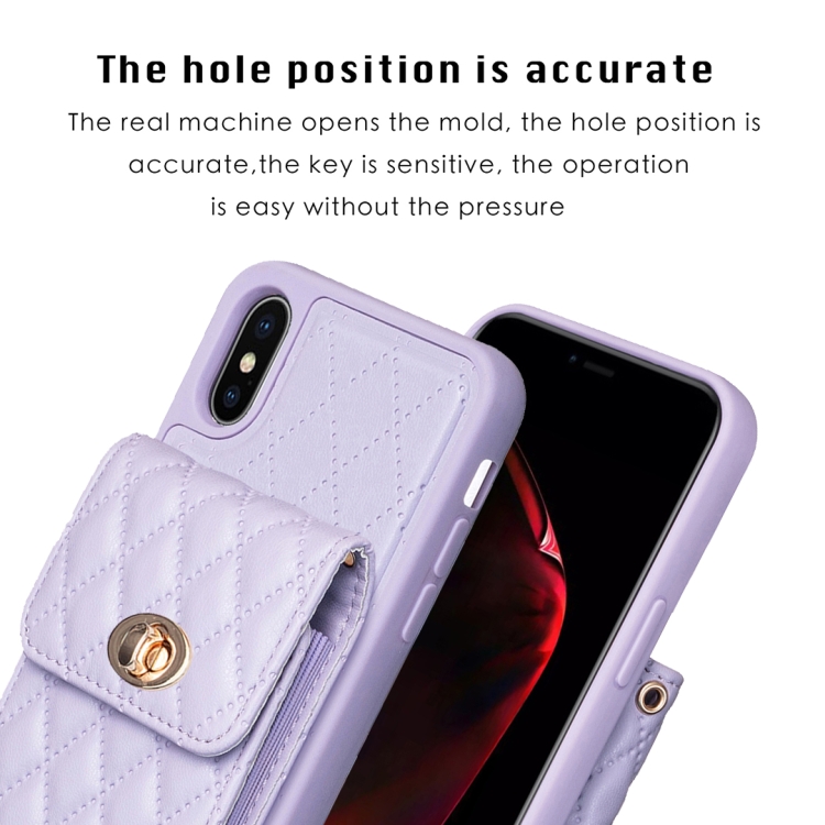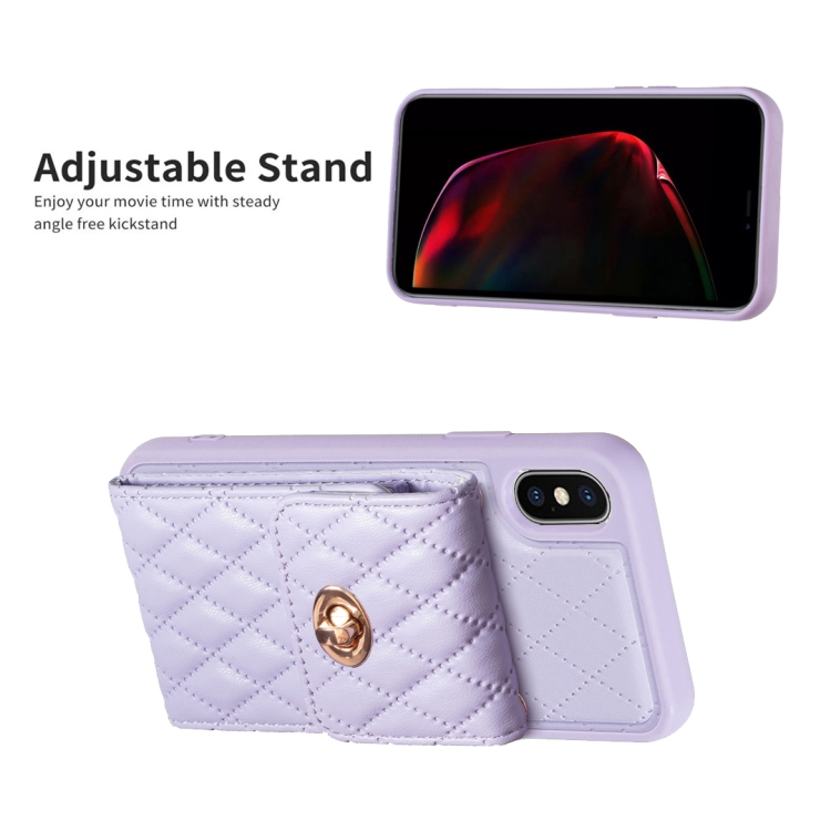 Caja de Teléfono de Cuero Rombal para iPhone X Xs Billetera con Hebilla de Metal Vertical (Púrpura)