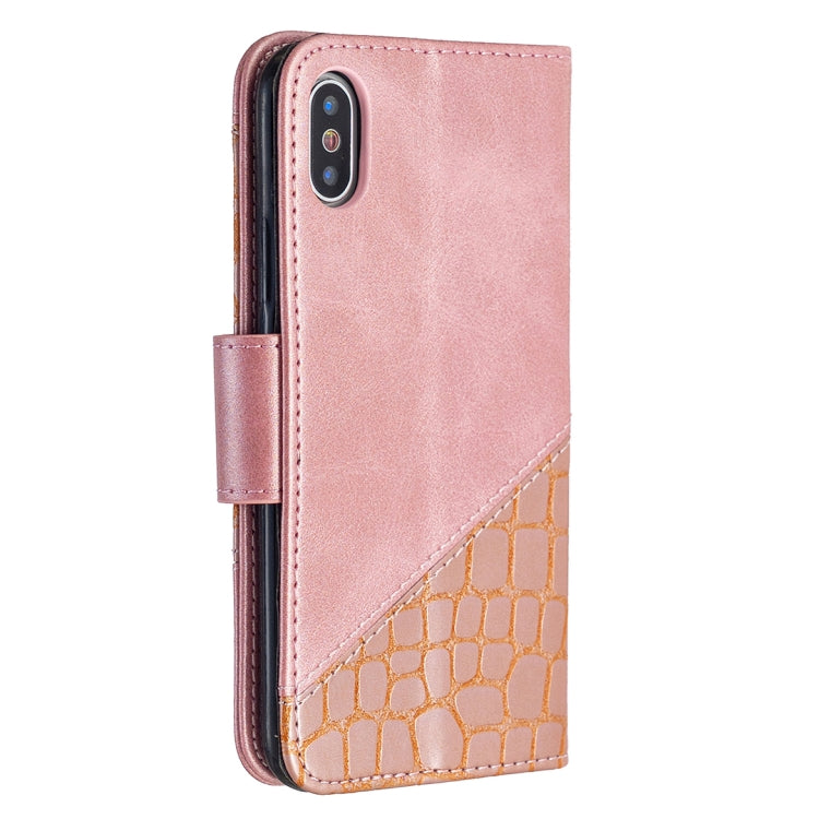 Funda de Cuero de Pu para iPhone X Xs con Tapa Horizontal Billetera Soporte y Ranuras para Tarjetas (Oro Rosa)
