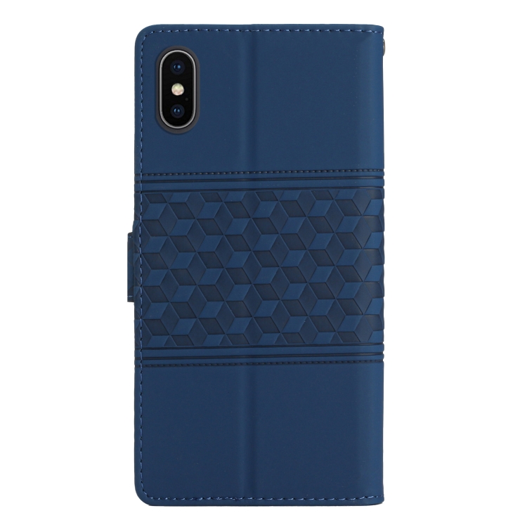 Estuche para Teléfono iPhone X Xs Cuero Sensación de Piel En Relieve con Cordón (Azul Oscuro)