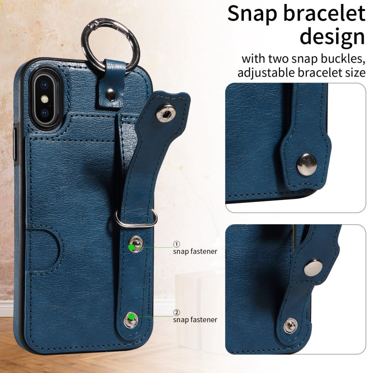 Funda para Teléfono iPhone X Xs con Anillo y Ranura para Tarjeta Textura de Pantorrilla (Azul)