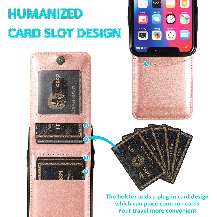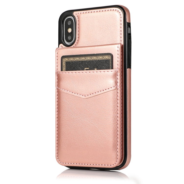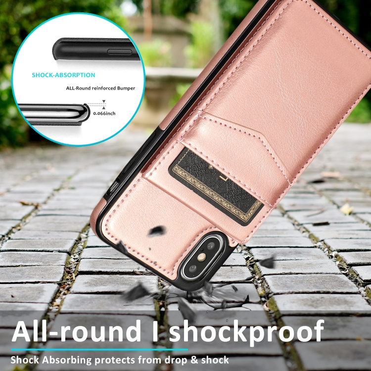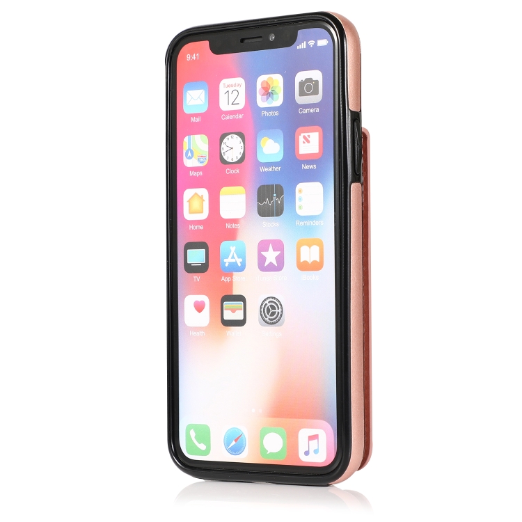 Funda Protectora para iPhone X Xs PC TPU con Soporte y Ranuras para Tarjetas (Oro Rosa)