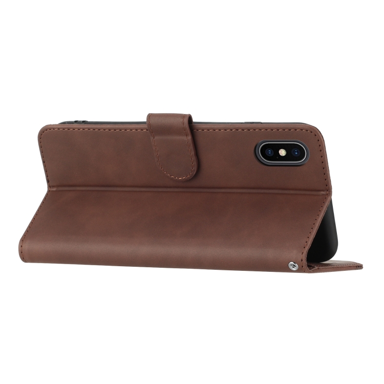 Funda para iPhone X/Xs Patrón de Corazón Piel Sensación Cuero (Marrón)