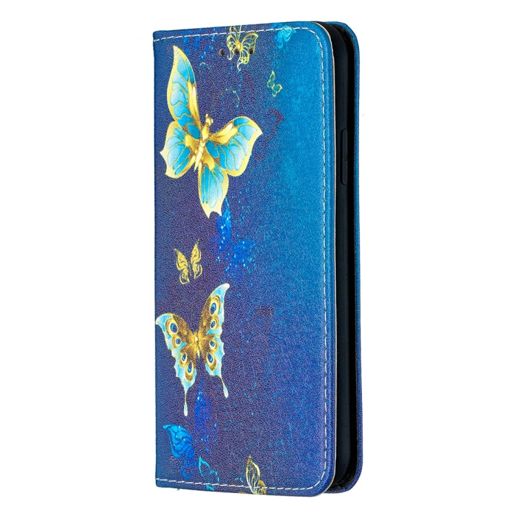 Estuche de Cuero de Pu para iPhone X / Xs con Tapa Horizontal Magnética Soporte y Ranuras para Tarjetas (Mariposas Doradas)