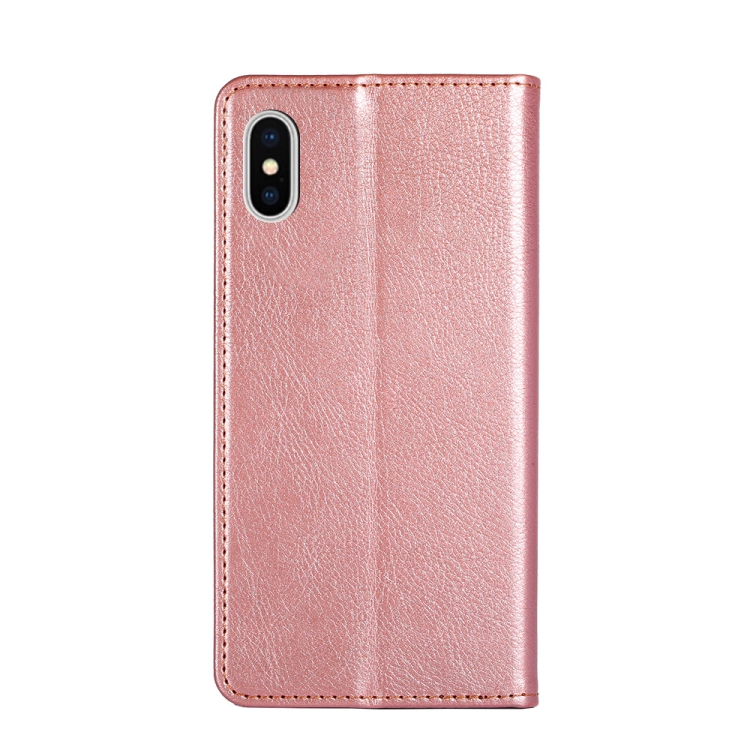 Funda para iPhone X / Xs Pu + TPU Cuero con Tapa Horizontal Magnética Soporte Ranura Tarjeta Billetera (Dorado)