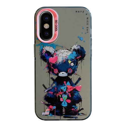 Caja para Teléfono iPhone X Xs PC + TPU Serie Pintura al Óleo Patrón Oso Andrajoso