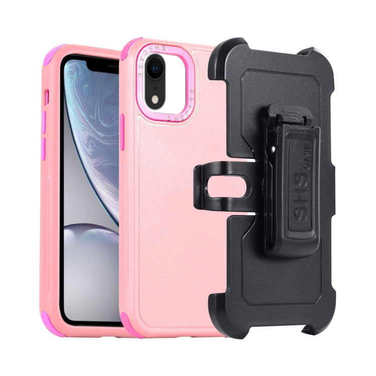 Funda para Teléfono iPhone Xr 3 en 1 PC y TPU con Funda Deslizante (Rosa + Rojo Rosa)