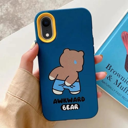 Estuche híbrido para iPhone Xr Awkward Bear PC y TPU (Azul Real)